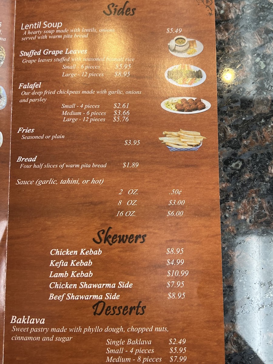 The menu moves effortlessly from crisp falafel and smoky baba ghanoush to generously plated shawarma wraps and perfectly seasoned kebabs. The grilled meats arrive tender and aromatic, layered with spices that feel rich but never overwhelming. If you’re in the mood for something hearty, the rice platters topped with chicken, beef, or lamb make for a satisfying choice, especially with a drizzle of garlic sauce or tahini. Even the salads feel vibrant and fresh, balancing out the deeper flavors with bright herbs and citrus.